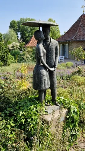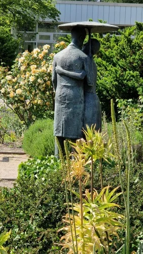 Vor-Ort-Recherche der Skulptur "Liebespaar unter dem Schirm" auf der Freundschaftsinsel, 14473 Potsdam: Diese Skulptur diente als Anregung für die Darstellung von Emotionen und Beziehungen in dreidimensionaler Form.
