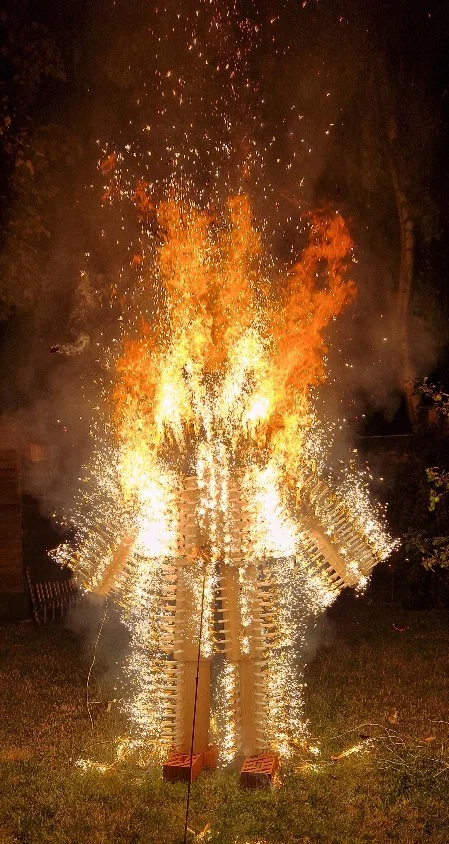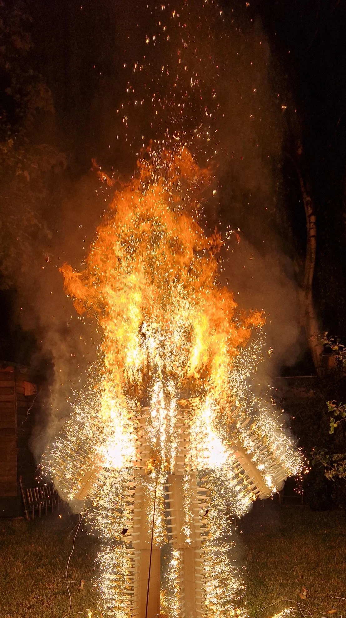 Mit den Erkenntnissen und Inspirationen aus der Recherchephase begann die kreative Kreation und der Bau der geplanten Feuerskulpturen. Verschiedene Techniken und Materialien wurden eingesetzt, um die Visionen in die Realität umzusetzen:
